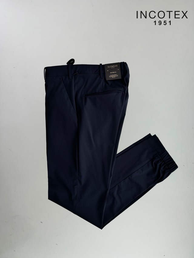 INCOTEX(インコテックス)ストレッチ ナイロン 裾シャーリングパンツ SLIM FIT 1TS001 NAVY(ネイビー)