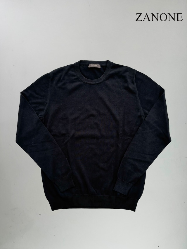 ZANONE(ザノーネ)12ゲージ クルーネック コットンクレープニット BLACK(ブラック)