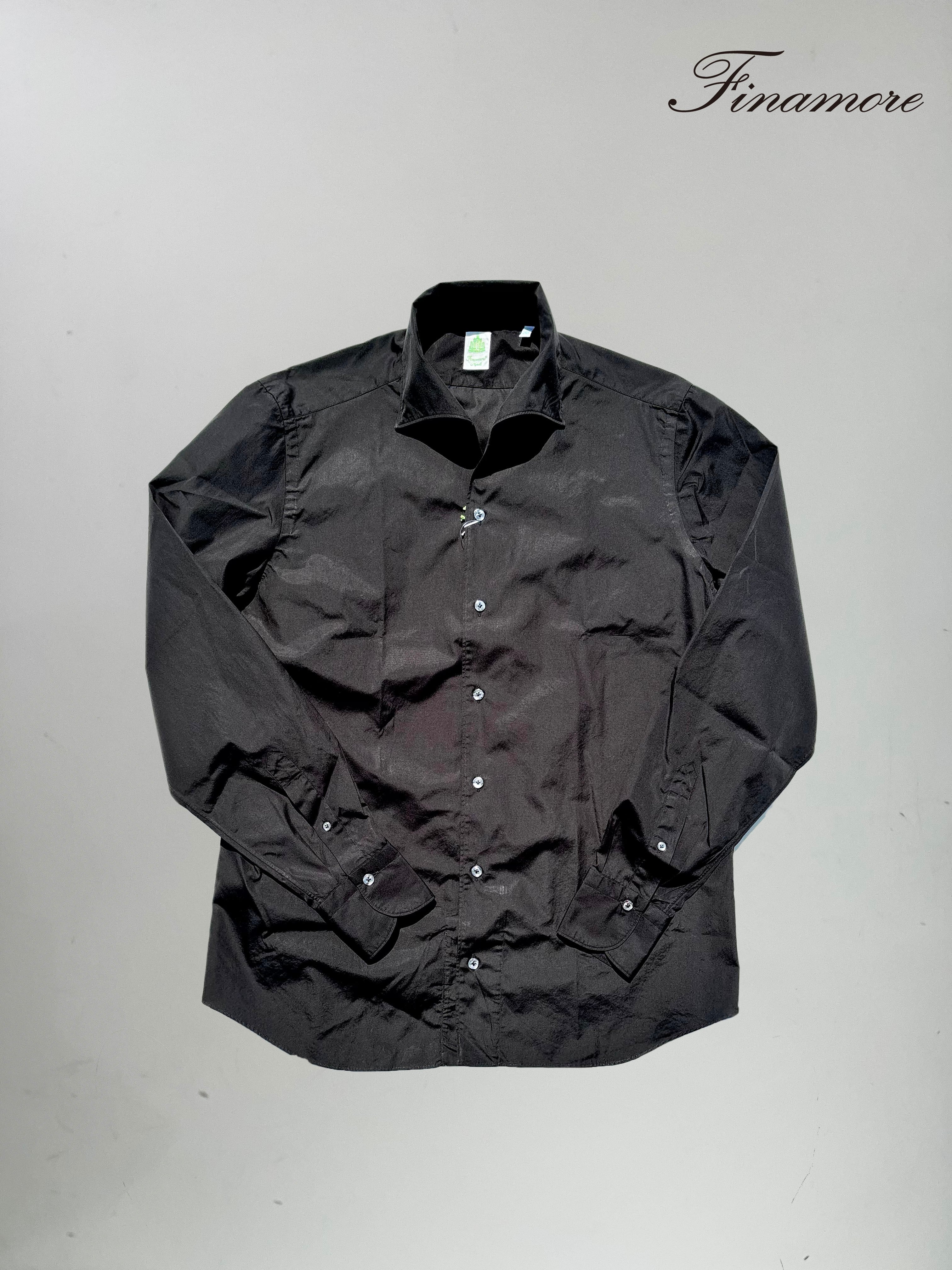 Finamore(フィナモレ)MANUEL(マヌエル)SEUL(セウル)コットンブロード ワンピースカラー ボタンダウン シャツ BLACK(ブラック)