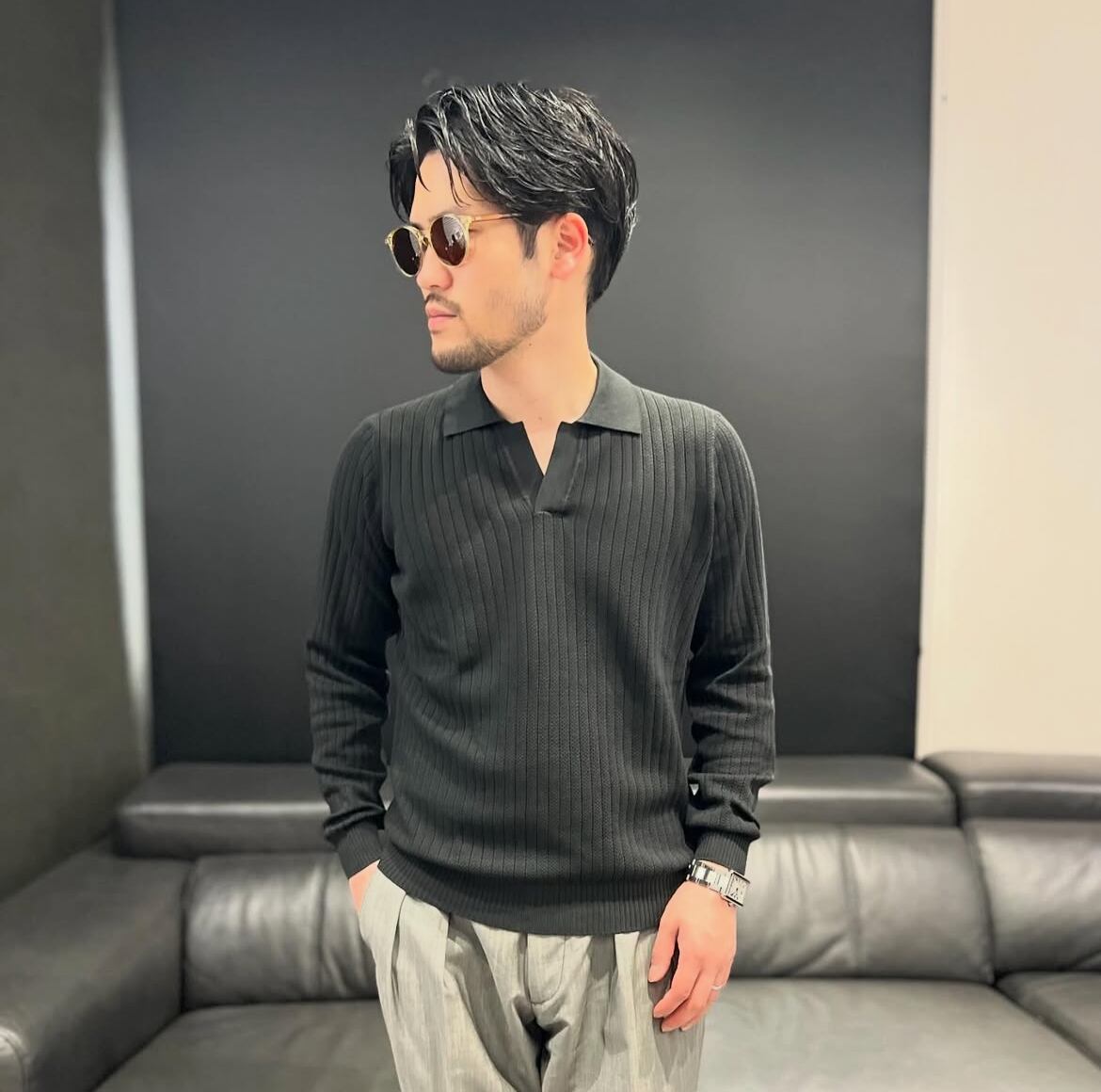 モダンな表情を見せるスキッパーニットポロいかがでしょうか