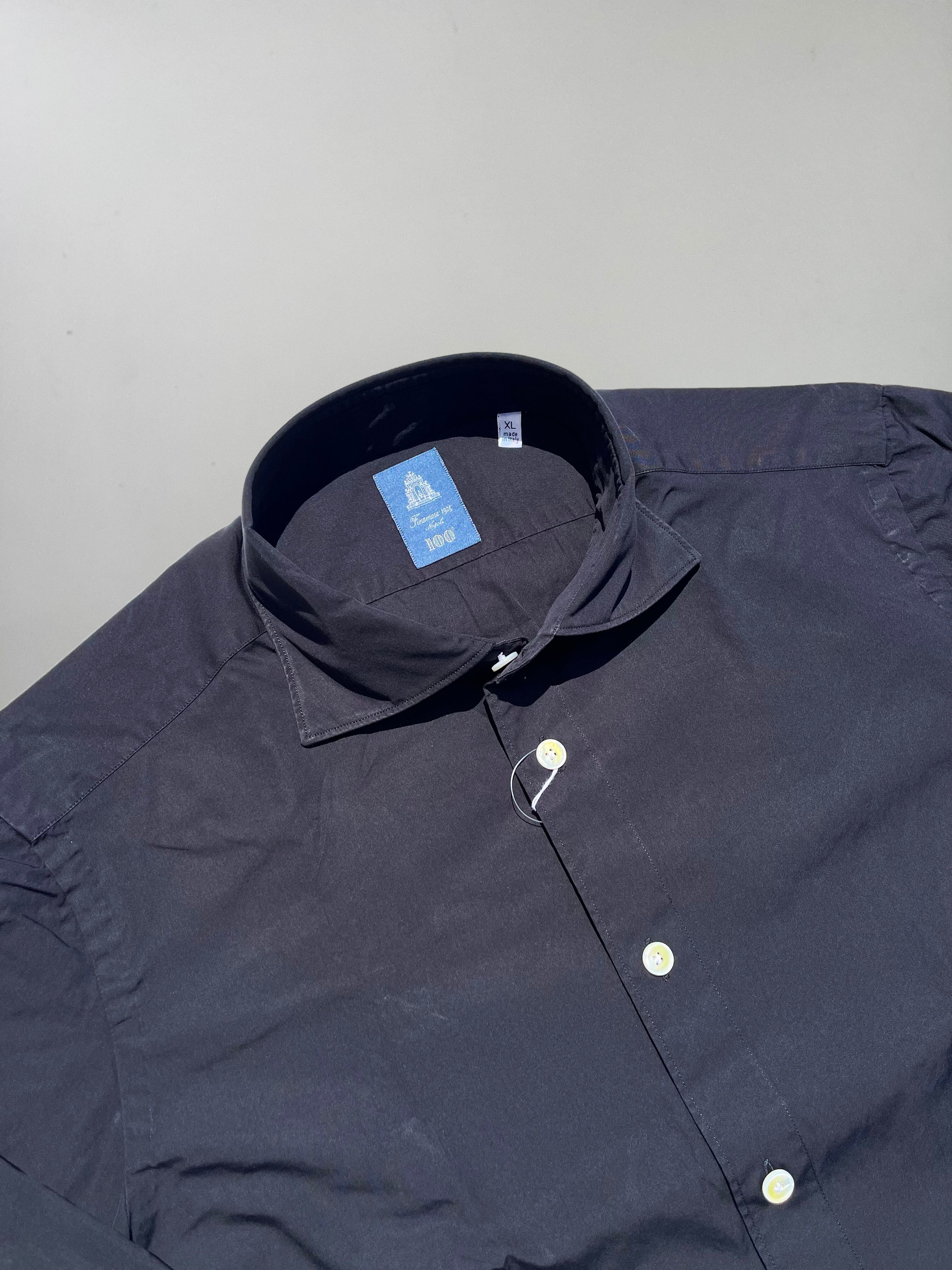 適度なハリはありつつも柔らかく滑らかな風合いが美しい、コットンポプリン生地を100%使用したFinamore(フィナモレ)のカジュアルシャツ。