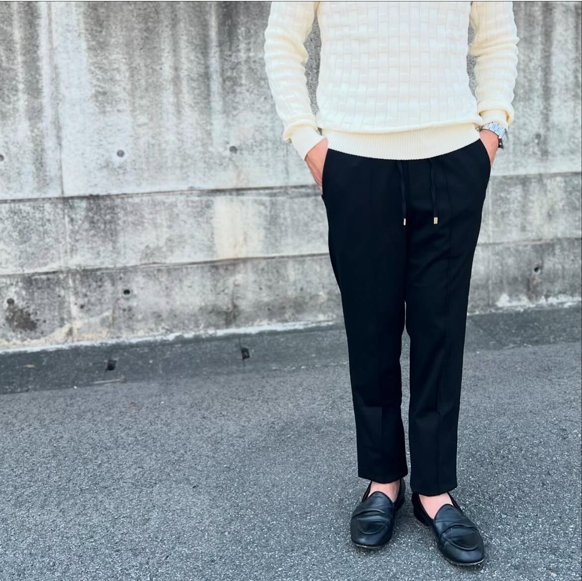 それにより一見普通のジャージーパンツがどこか品があり、だらしなく見えないので、大人な方にぴったりなイージーパンツの仕上がりに。