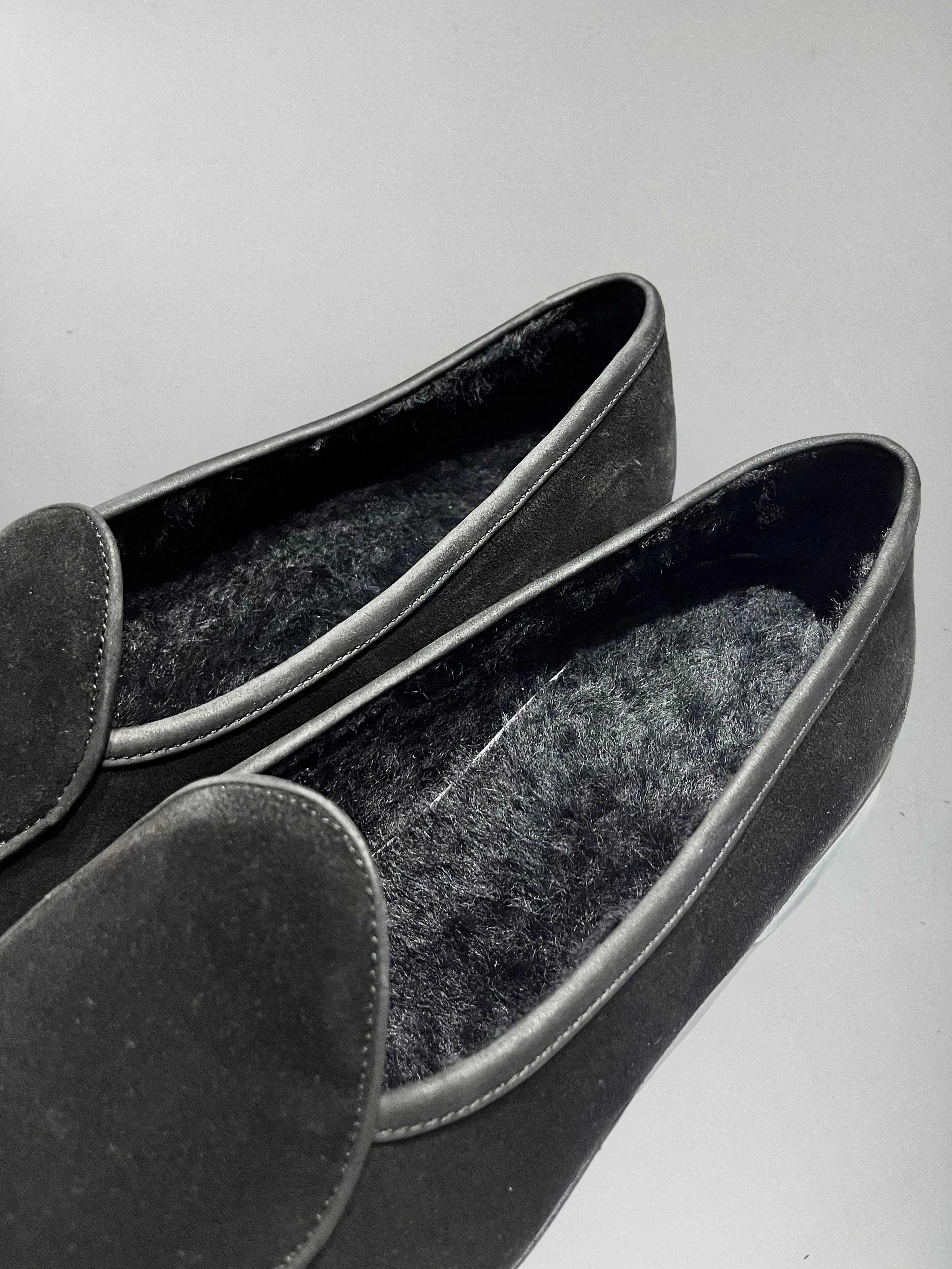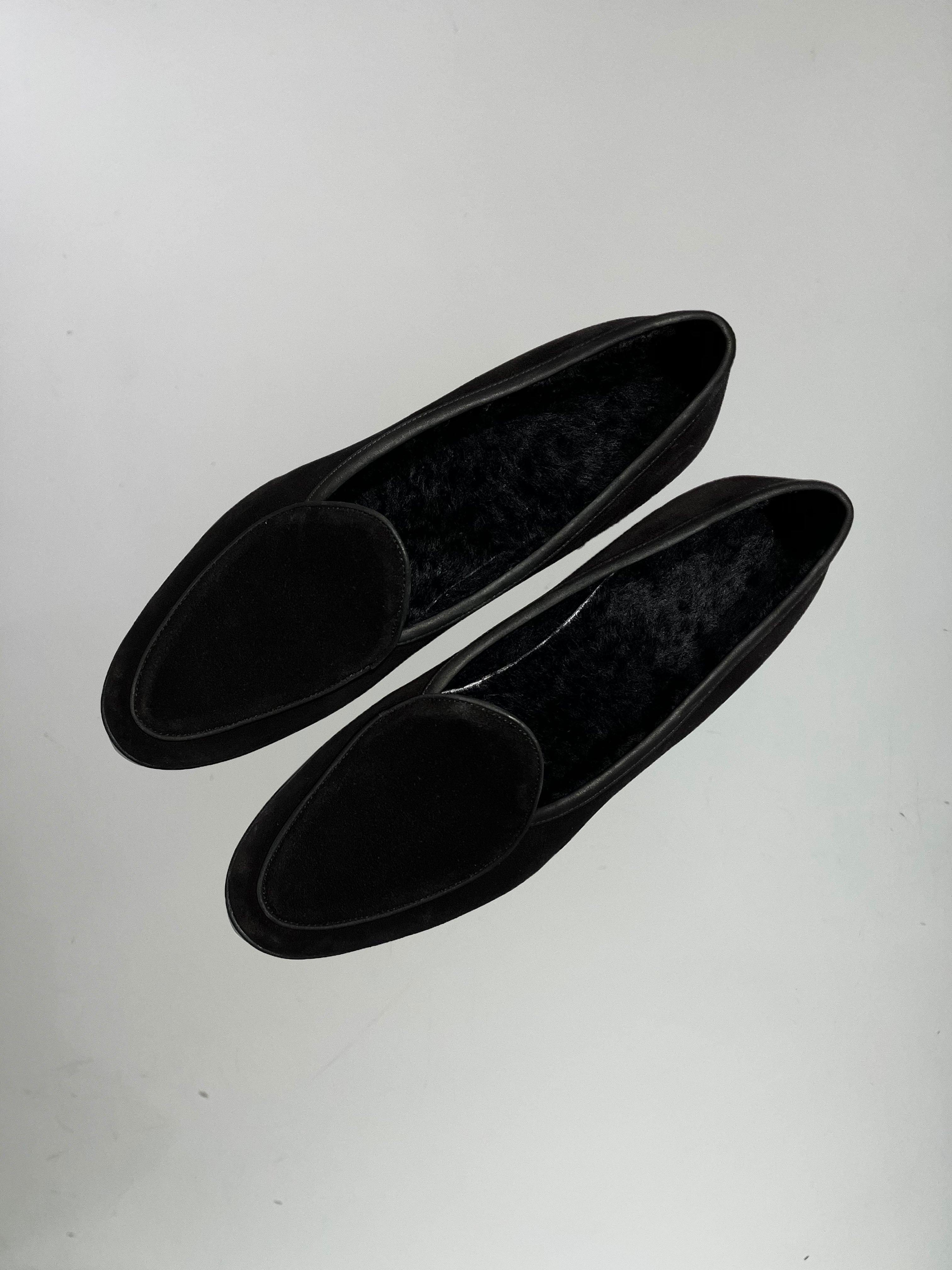 BAUDOIN&LANGE(ボードイン アンド ランジ)SAGAN STRIDE(サガンストライド) ボアファー プレーン ベルジャンシューズ BLACK(ブラック)