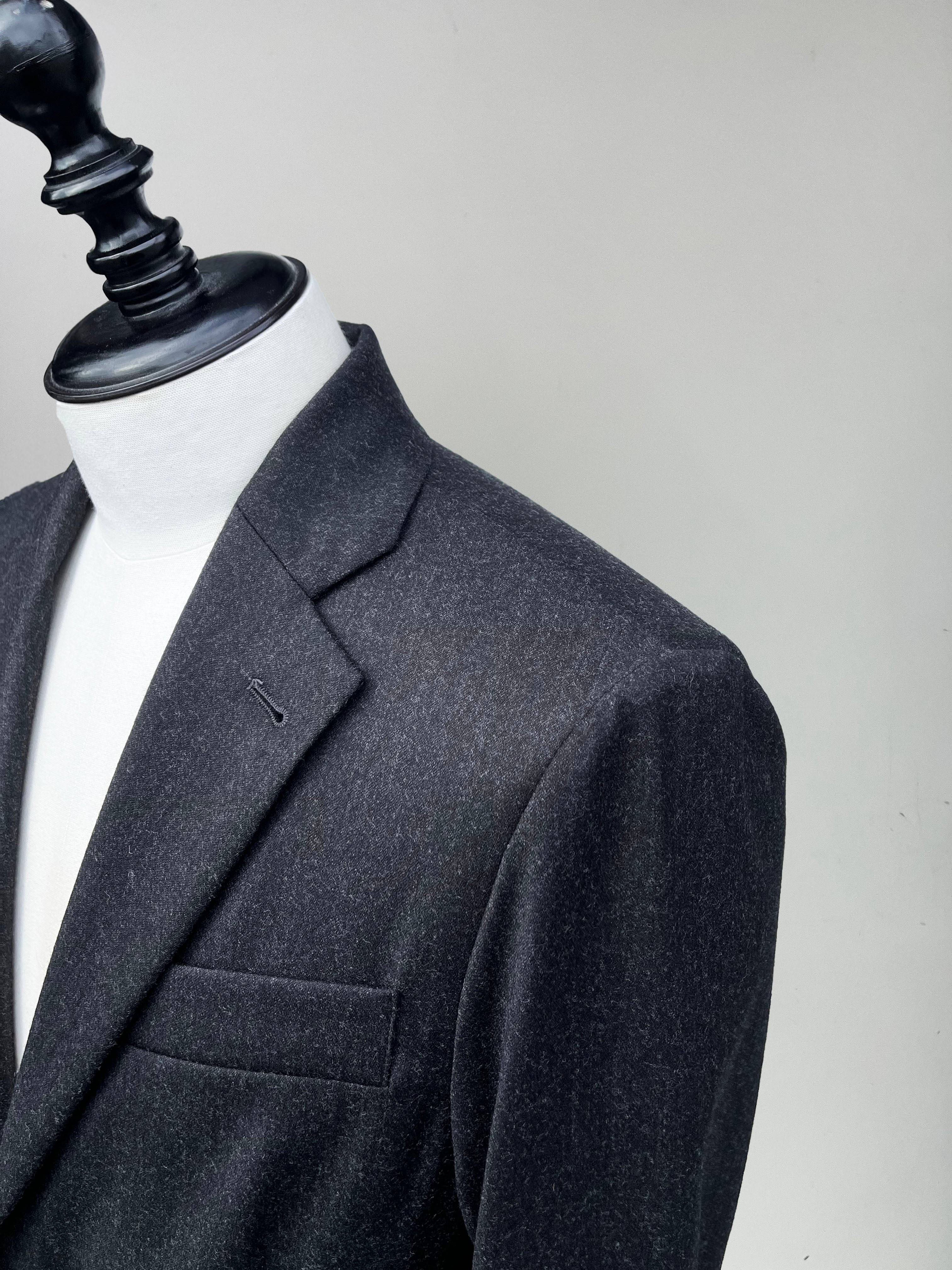 複雑なメランジ杢の色合いがエレガントさを強調し、重すぎないウェイトで長く着用することが可能となっております。