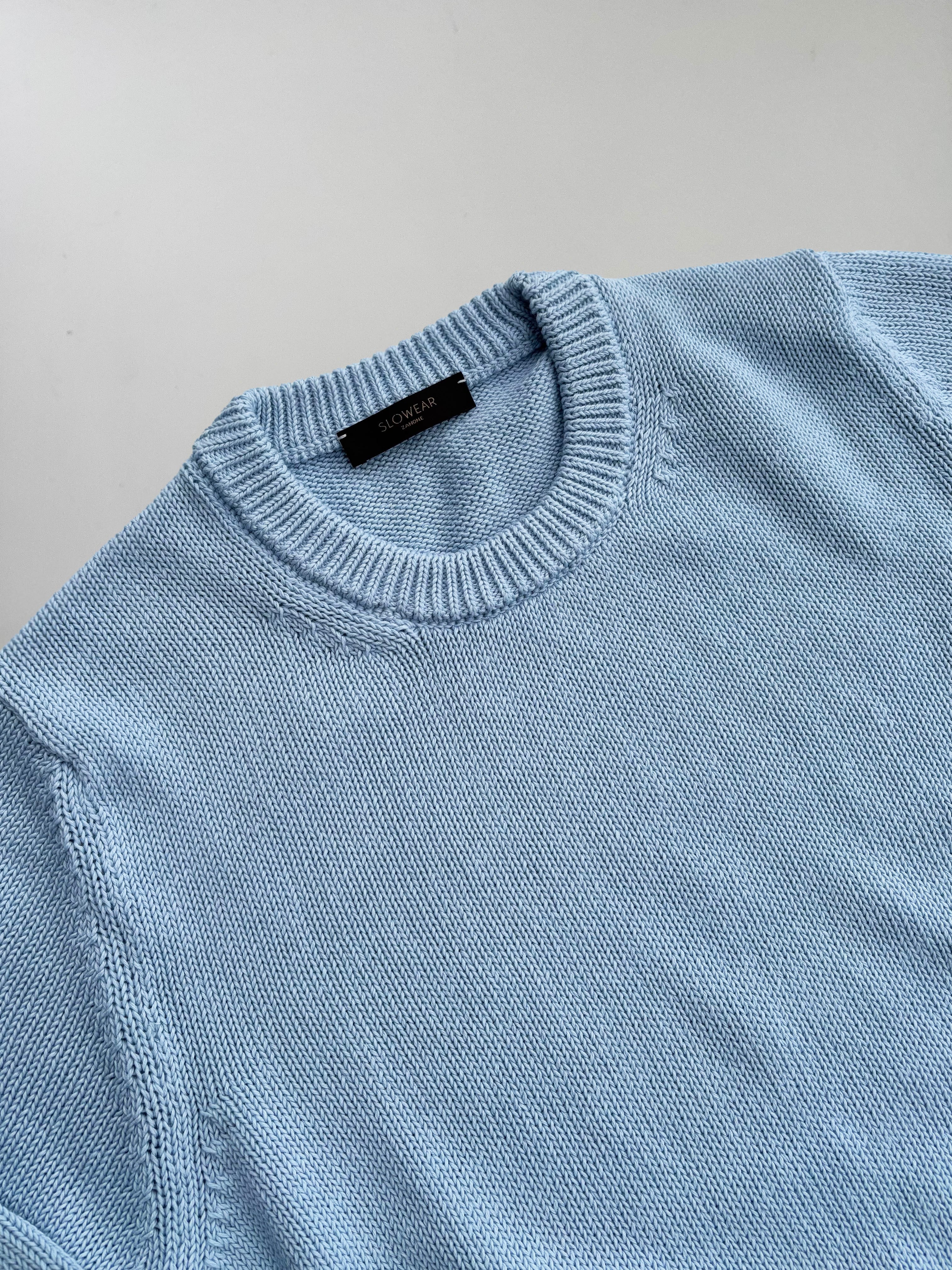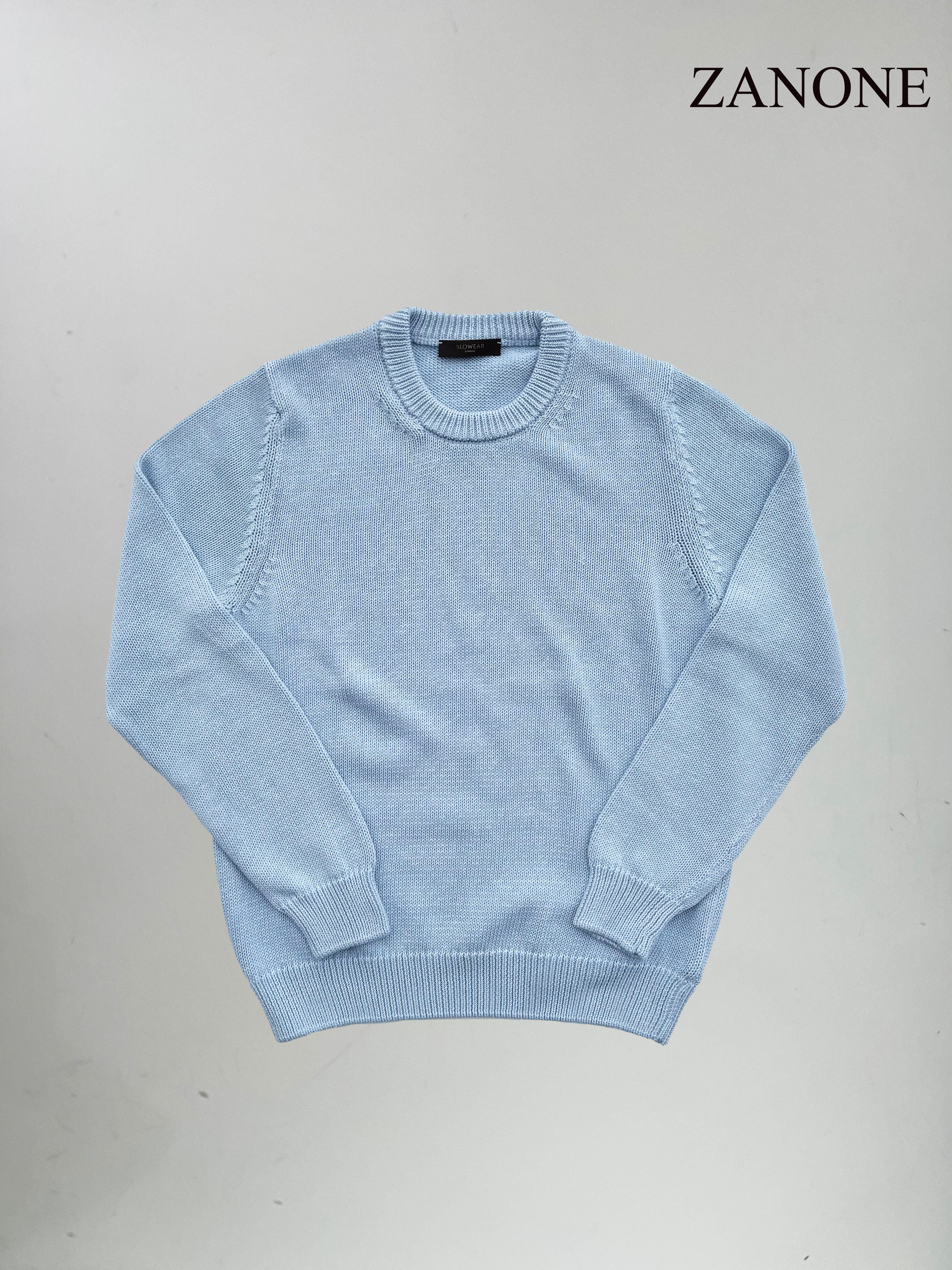 ZANONE(ザノーネ)5ゲージ クルーネック コットンニット ICE BLUE(アイスブルー)