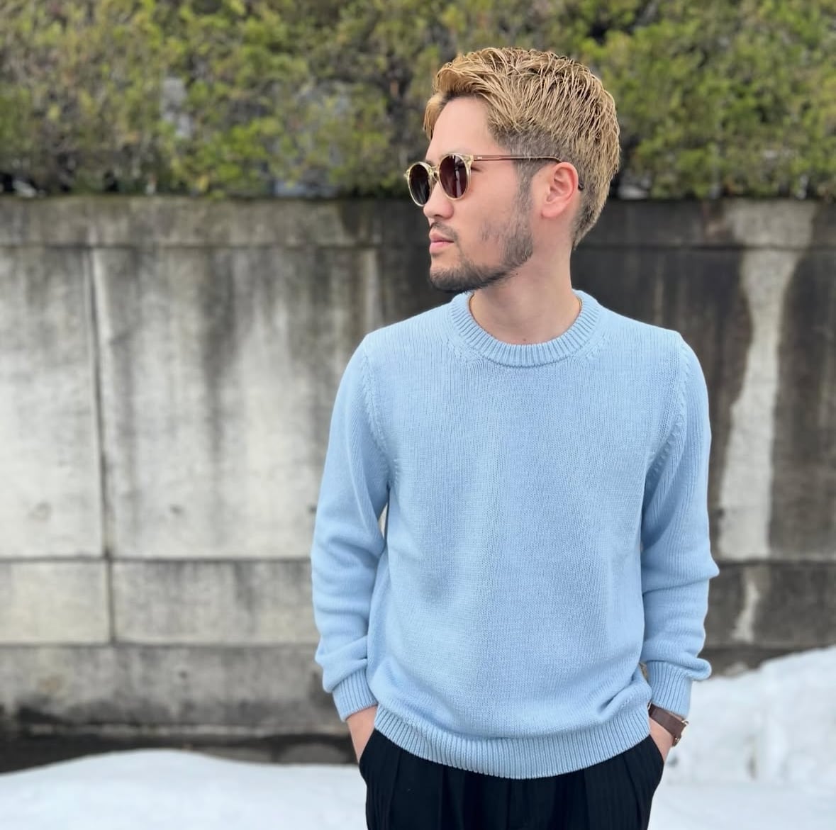 一枚で着るも良し、カットソーやシャツをインナーにしてネックレイヤードを楽しむも良し、ベストやアウターはだいたい何でも合うのでミッドレイヤーとしても抜群です。