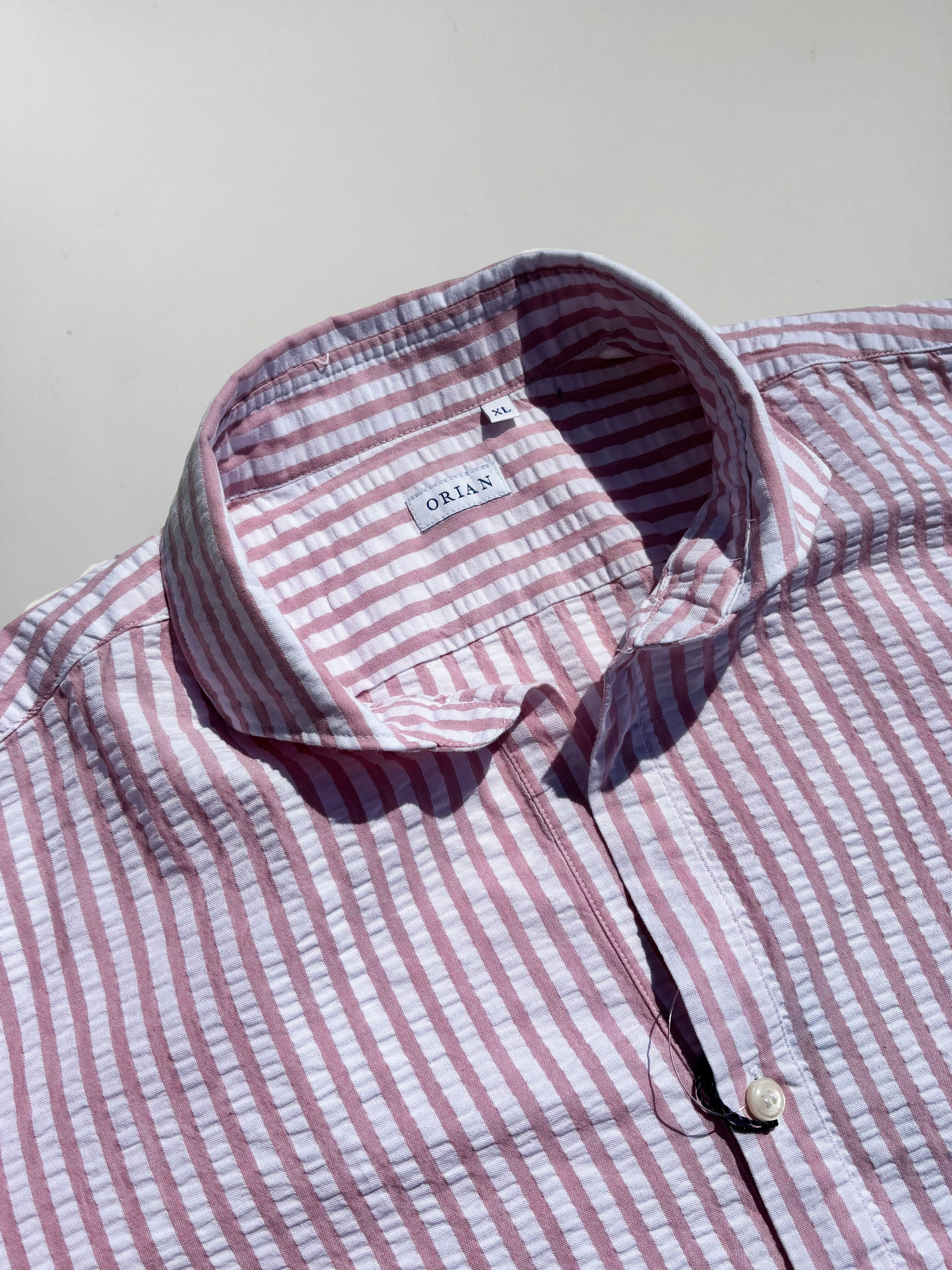 ORIAN(オリアン)ストライプ コットンシアサッカー カプリシャツ PINK(ピンク)