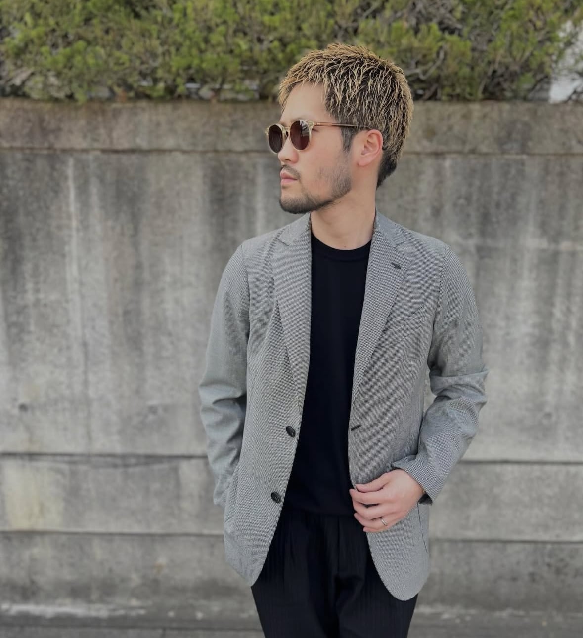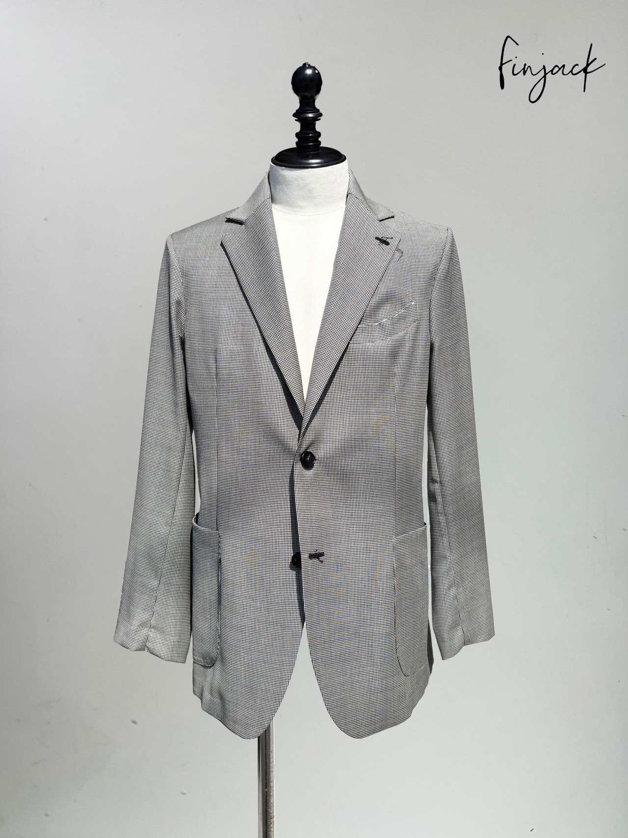 Finjack(フィンジャック)ロロピアーナファブリック ハウンドトゥース 2Bシングルジャケット BLACK(ブラック)