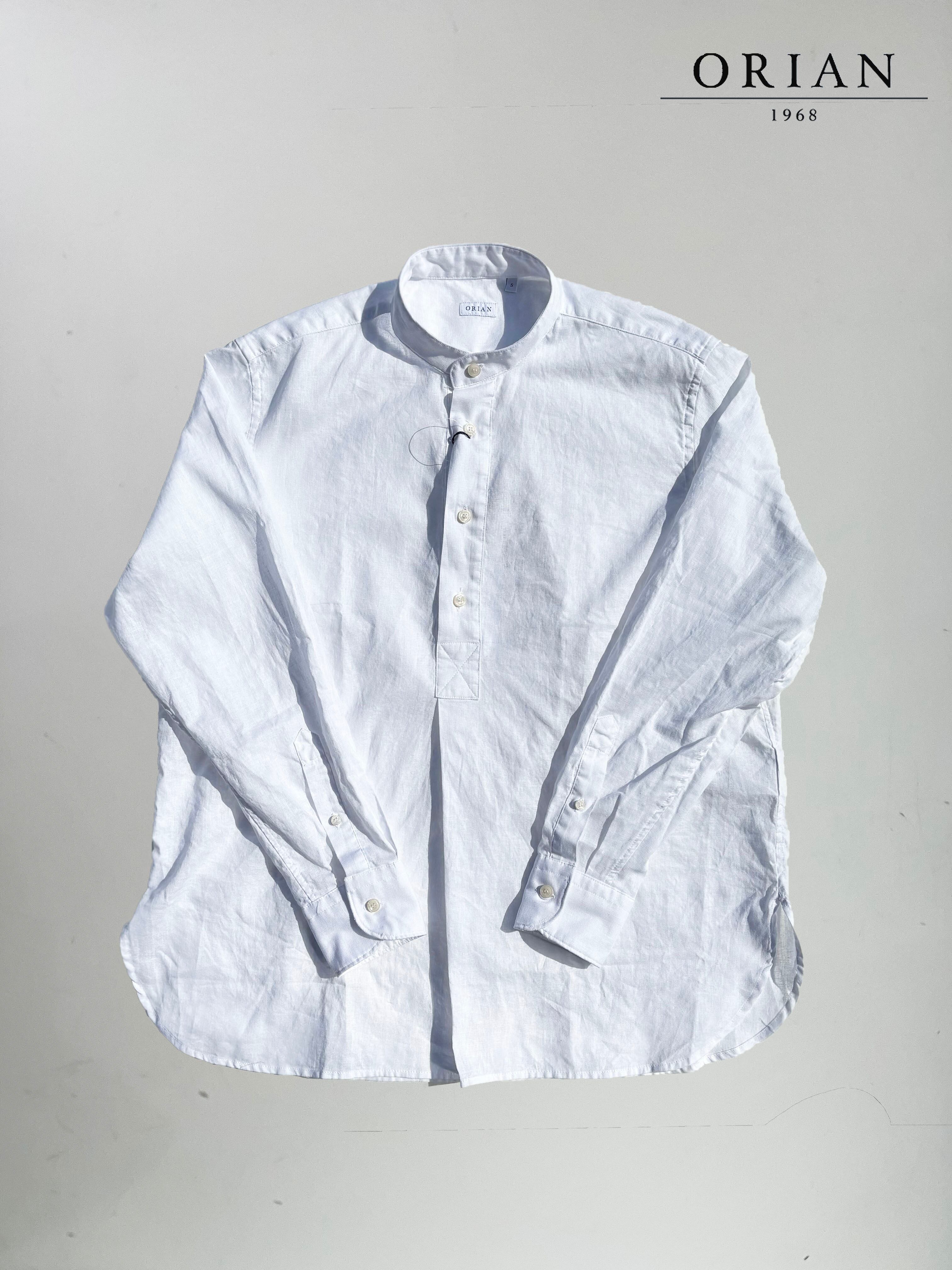 ORIAN(オリアン)コットンリネン バンドカラープルオーバー WHITE(ホワイト)