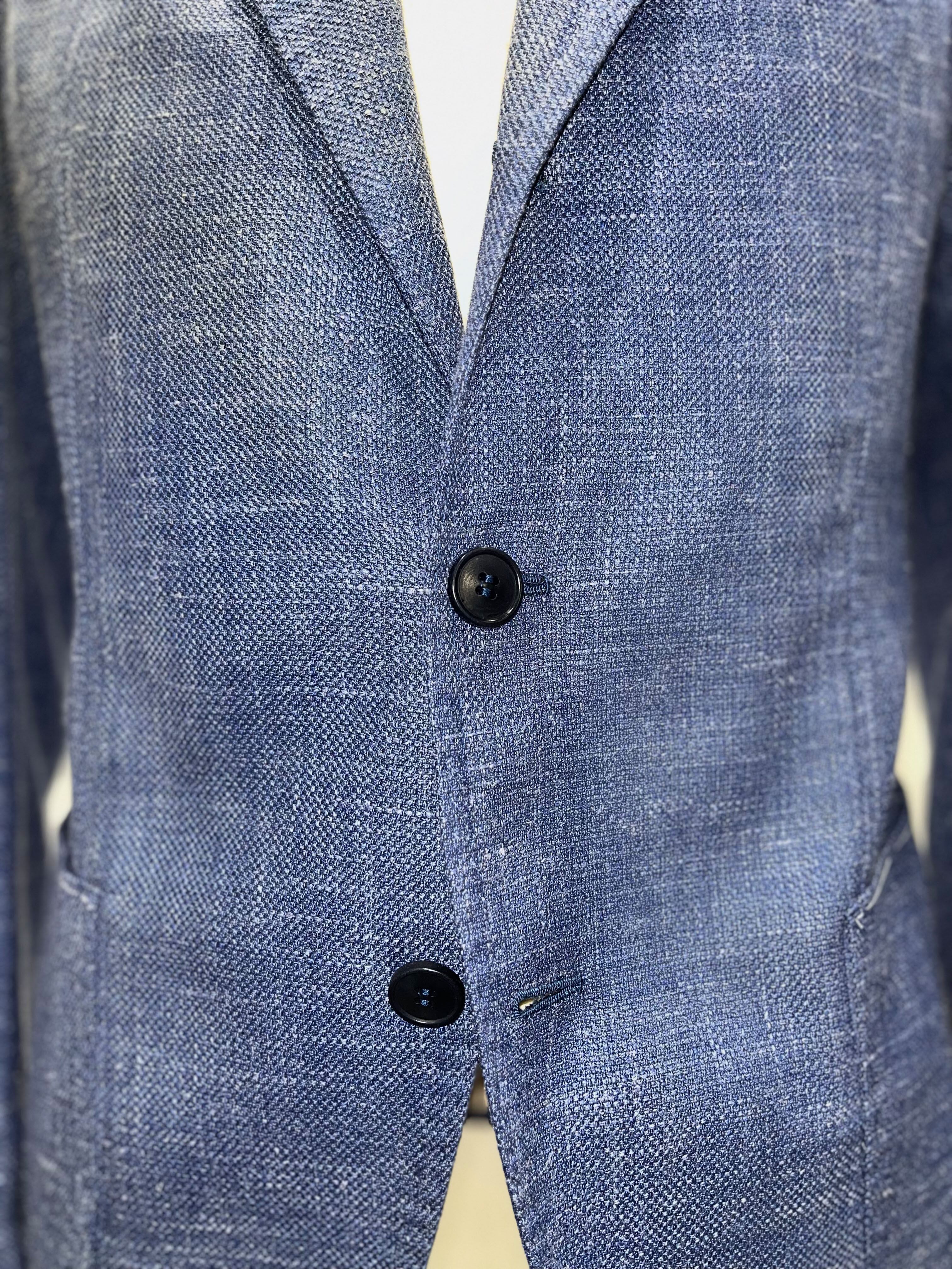 GABO(ガボ)ウールリネンシルク サマーツイードシングル3Bジャケット BLUE(ブルー)