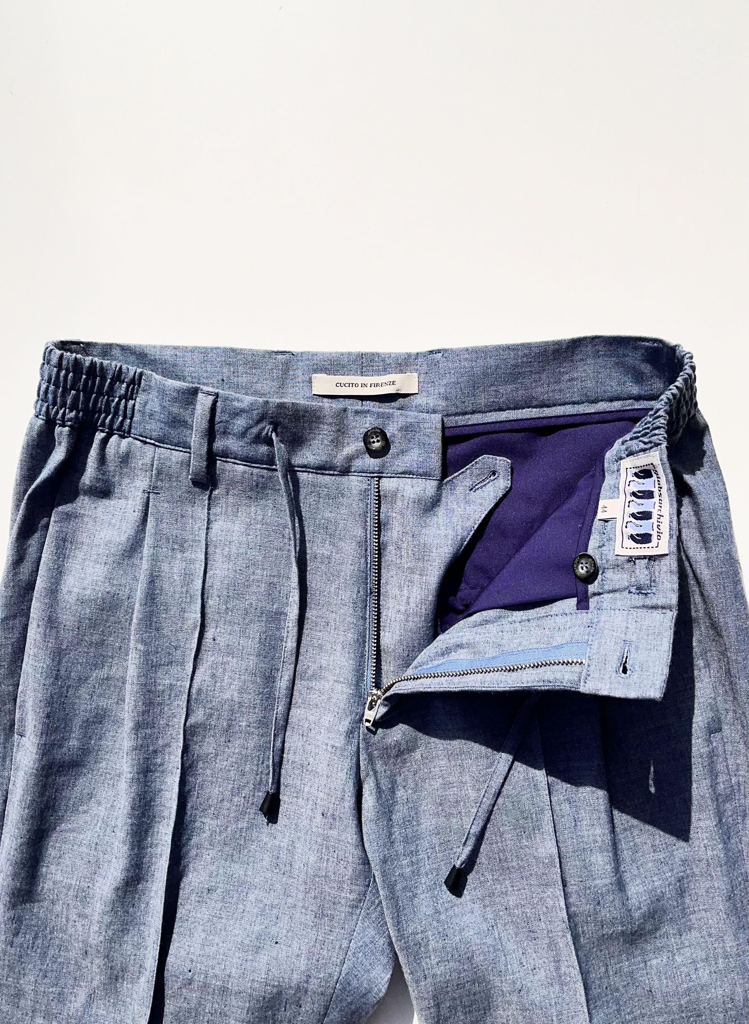 仕様:ジッパーフライ / ドローコード / 1プリーツ / 永久クリース / ウエストゴム / ステッチ仕上げ