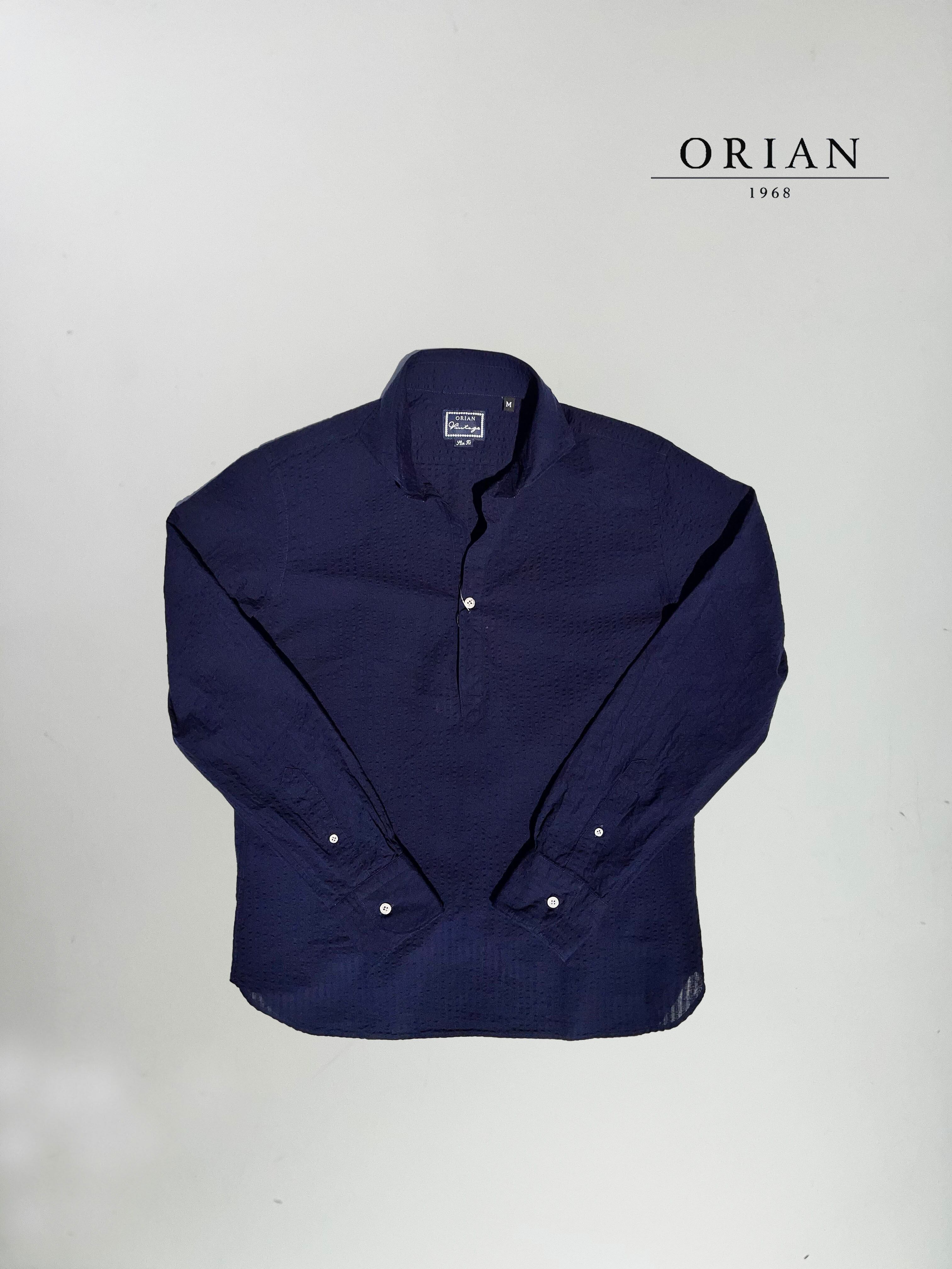 ORIAN(オリアン)コットンシアサッカー カプリシャツ NAVY(ネイビー)